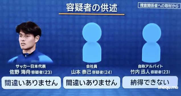 朝日电视台采访了一位案件调查者,该相关人士表示,佐野海舟对于自己的罪行表示“毫无异议”。和佐野海舟一同被捕的两名男子中,一人选择认罪,另一人拒绝认罪。