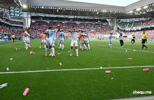 进球回放还没放完,主裁判就吹响了终场哨。阿根廷队的绝平进球,让摩洛哥球迷心态失衡,他们疯狂将各种物品扔进场内,甚至还有人冲进球场,试图攻击阿根廷队的球员。裁判员不得不让两队球员返回更衣室,比赛变成了一场闹剧。