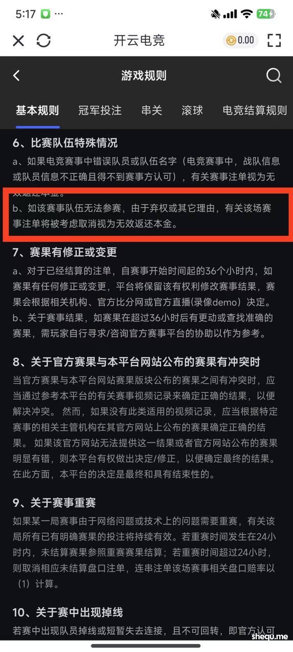 他们自己承认选手有作弊行为赢比赛,也承认官网的比分作废,但就是不退钱,类似那种我承认我错了但是就是改不了,这么大个平台,自己定的规则自己不遵守,所谓的公平公正呢